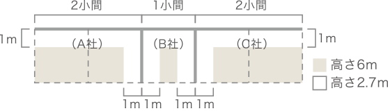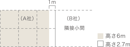 隣接小間との境界線より1m以内は高さ2.7mまで。