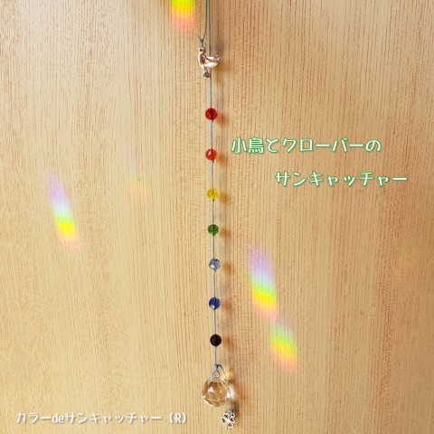 『シアワセを運ぶ小鳥と四つ葉のクローバーのサンキャッチャー』
