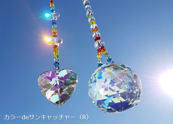 『カラーdeサンキャッチャー®』 サンキャッチャーとは、シャンデリアに使われるクリスタルガラスのパーツを用いたインテリア雑貨です。
