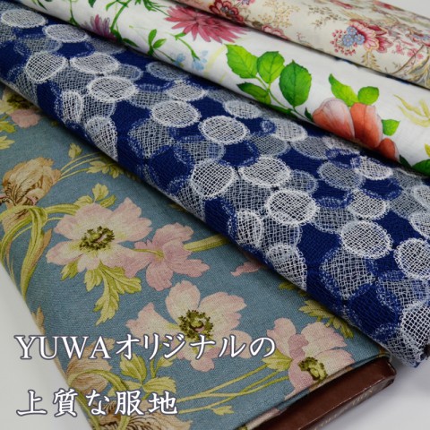 高品質で扱いやすいYUWAの生地は、お洋服作りや小物作り、カルトナージュまで、大活躍間違いなしです。