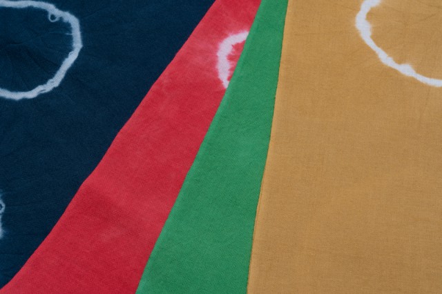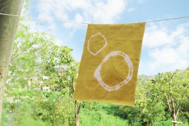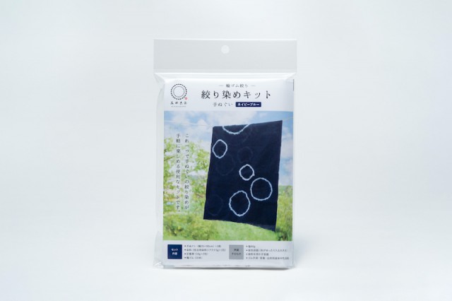 絞り染め手ぬぐいキット(輪ゴム絞り)と絞り染めハンカチキット(縫い絞り)