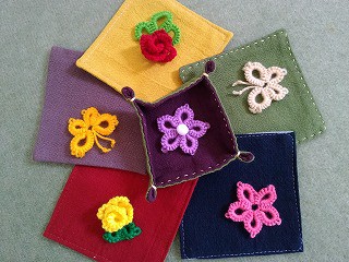 3Dの花、蝶々、三つ葉、5弁の花等を作ってブローチ、コースター等に貼り付けます