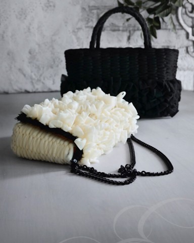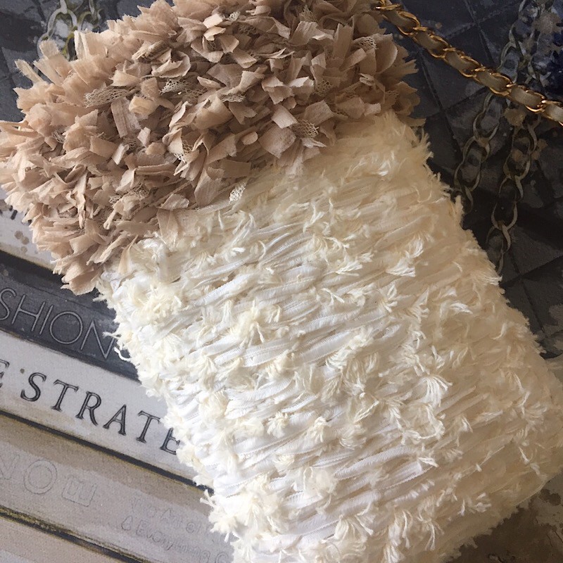 ツイード生地で有名な英国LINTON社製の糸、 CHIC FLICオリジナル糸を使用し ネットにかぎ針で編み付けて スマホポシェットを作成します。スマホ以外にも ちょっとした外出に必要な物も収まるサイズとなります。編み物が苦手な方でも簡単に形の綺麗な作品が仕上がります。