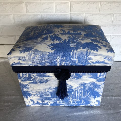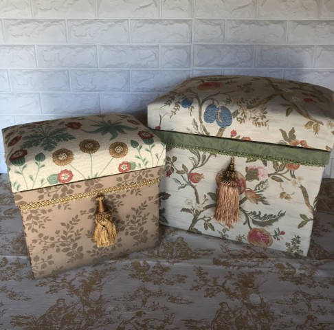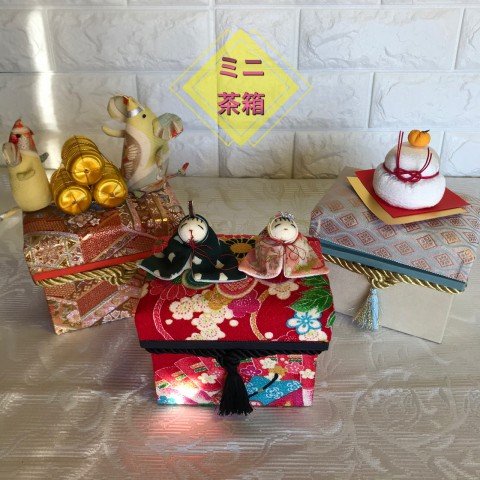 桐箱にカルトナージュ手法で、お茶箱風に仕上げます。